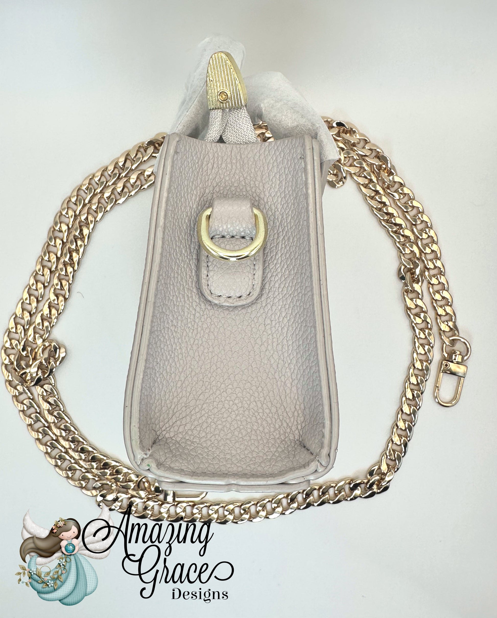 This sophisticated grey mini tote is a versatile addition to any wardrobe. The bag is crafted from durable faux leather and features a smooth, top-zipper closure to keep your belongings secure. It includes a stylish gold-tone chain strap that can be easily removed, offering multiple ways to wear it. The compact design is perfect for holding your phone, wallet, and other small essentials while maintaining a clean and modern aesthetic. Whether you're running errands or enjoying a night out, this bag provides both style and functionality.