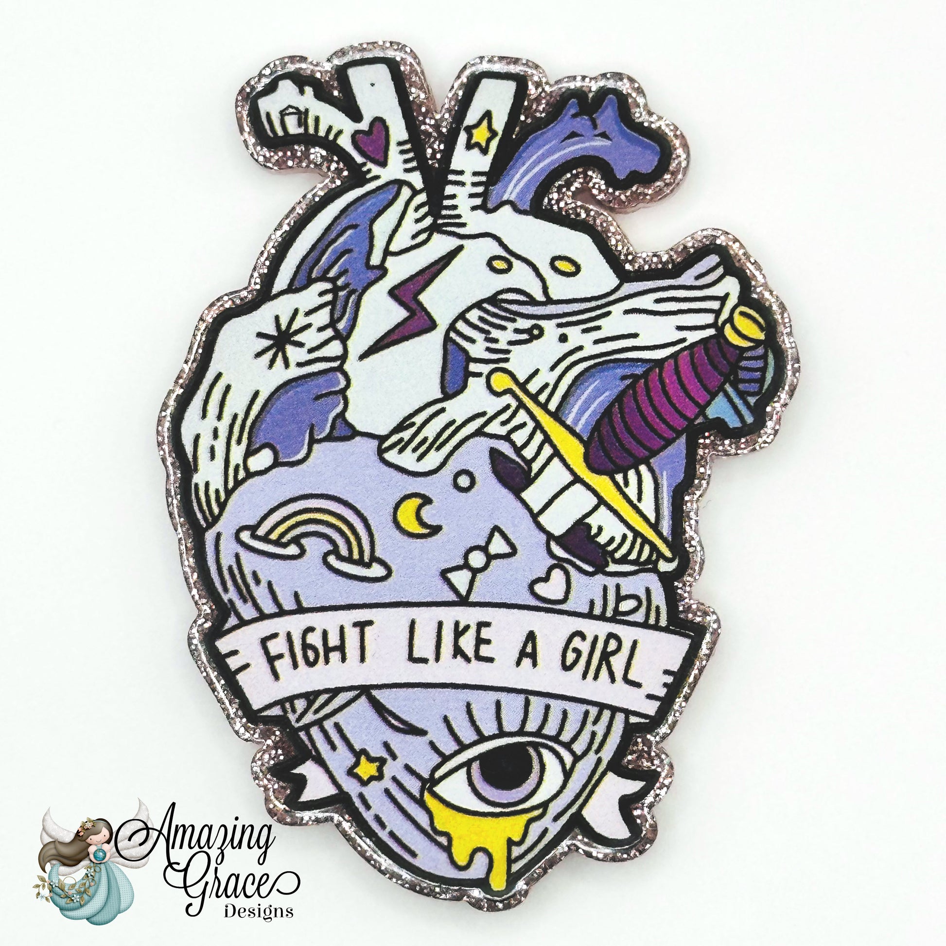 Make a statement with our Sparkly "Fight Like A Girl" Anatomical Heart Badge Topper This vibrant, durable acrylic charm adds a powerful and unique touch to your badge reel. Featuring intricate details and a shimmering glitter border, it's the perfect accessory for nurses, doctors, teachers, or anyone proud to show their resilience. (Badge reel not included).