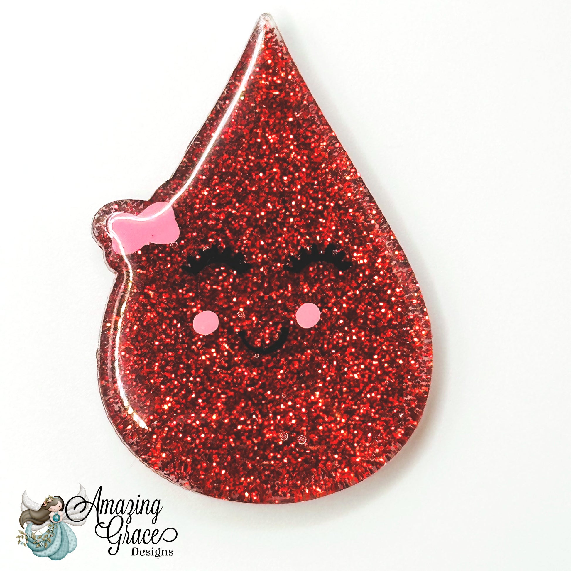 - Design: Cute Blood Drop with Face and Pink Bow