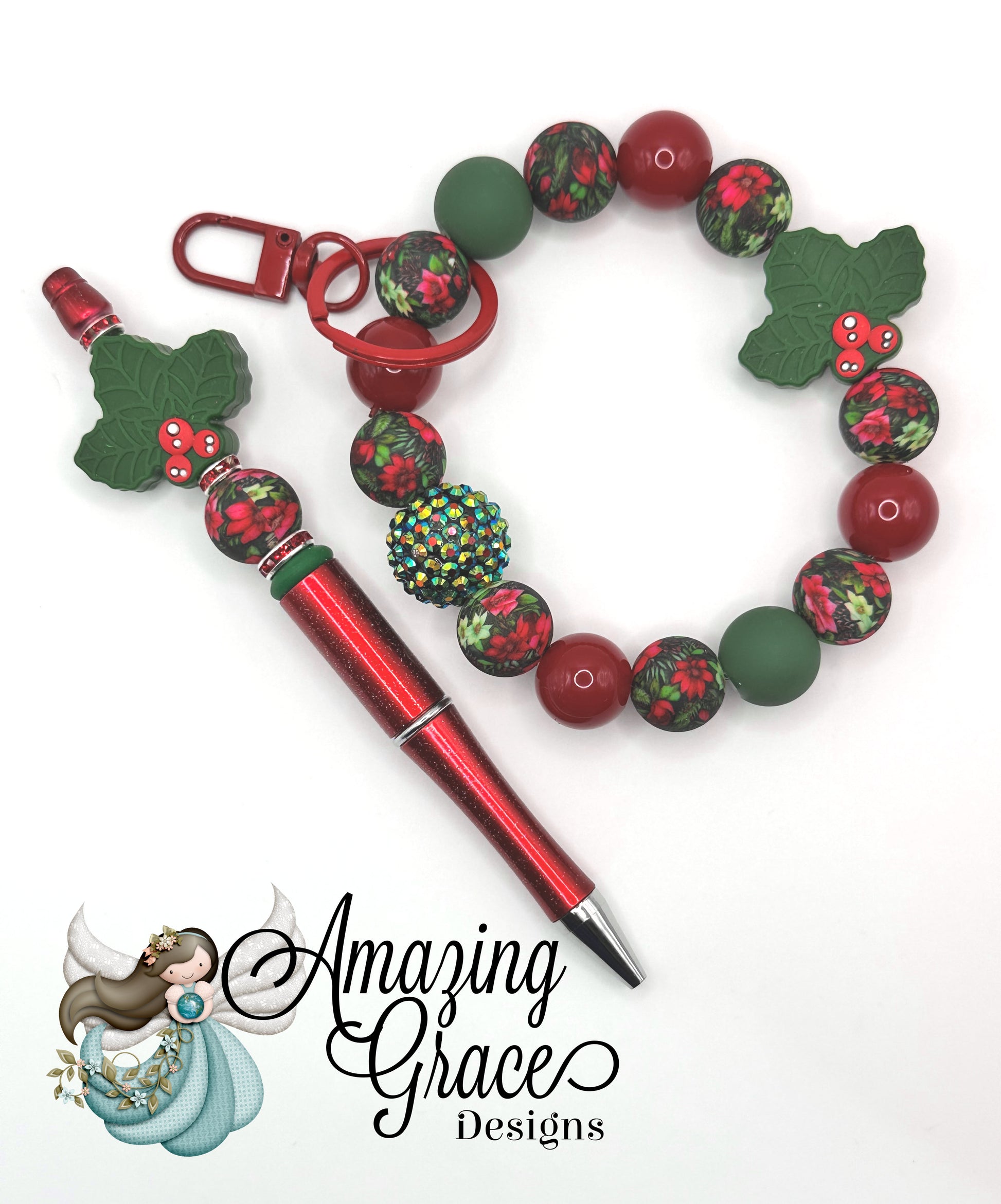 Get ready for the most wonderful time of the year with this enchanting holiday pen and matching beaded wristlet set! Decked out in festive reds and greens, complete with charming holly accents and dazzling glitter, this whimsical duo brings Christmas cheer to your notes and keeps your keys delightfully jingling.