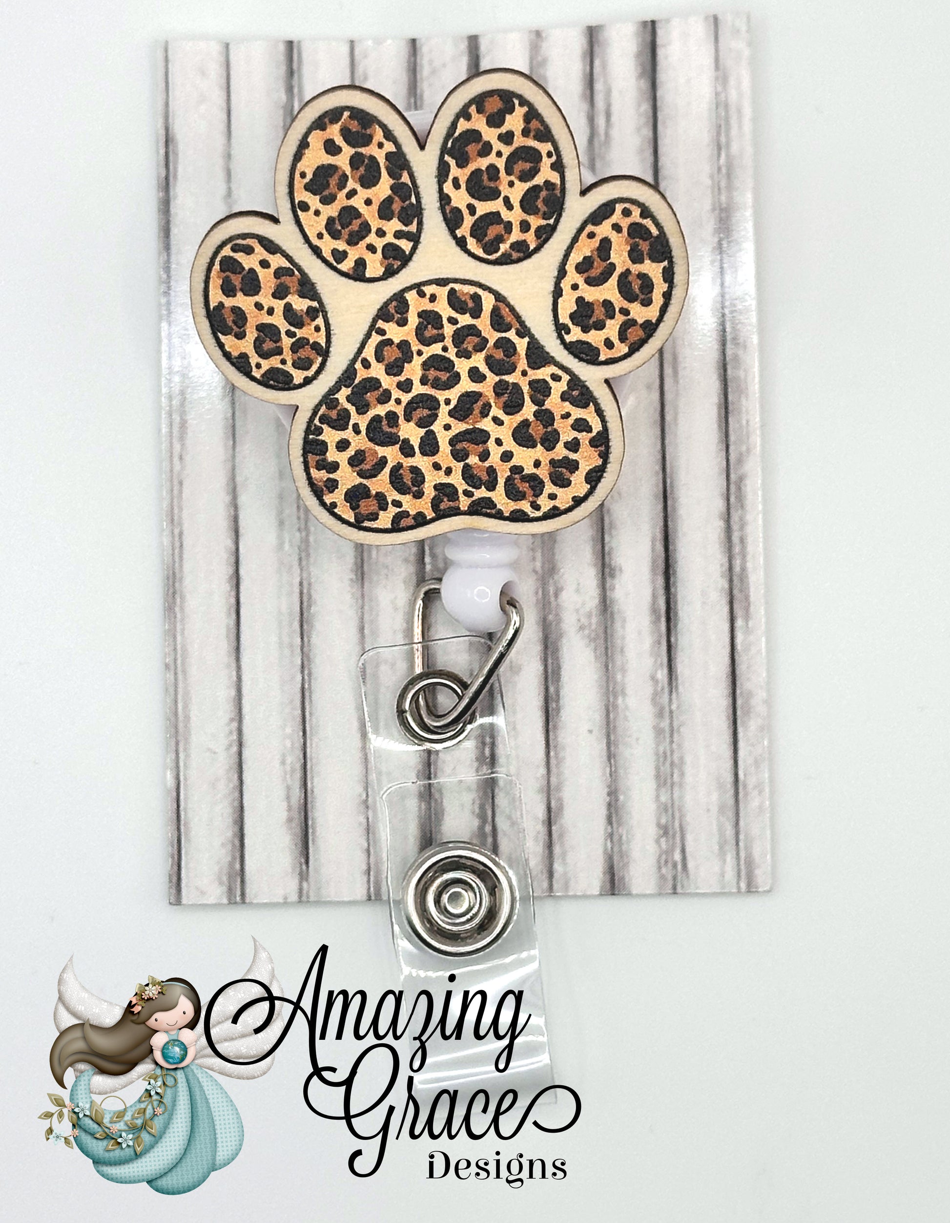 Show off your wild side with this stylish leopard print paw retractable badge reel! This non-interchangeable badge reel is perfect for securely holding your ID, keys, or small tools while adding a fun, animal-inspired touch to your everyday attire.