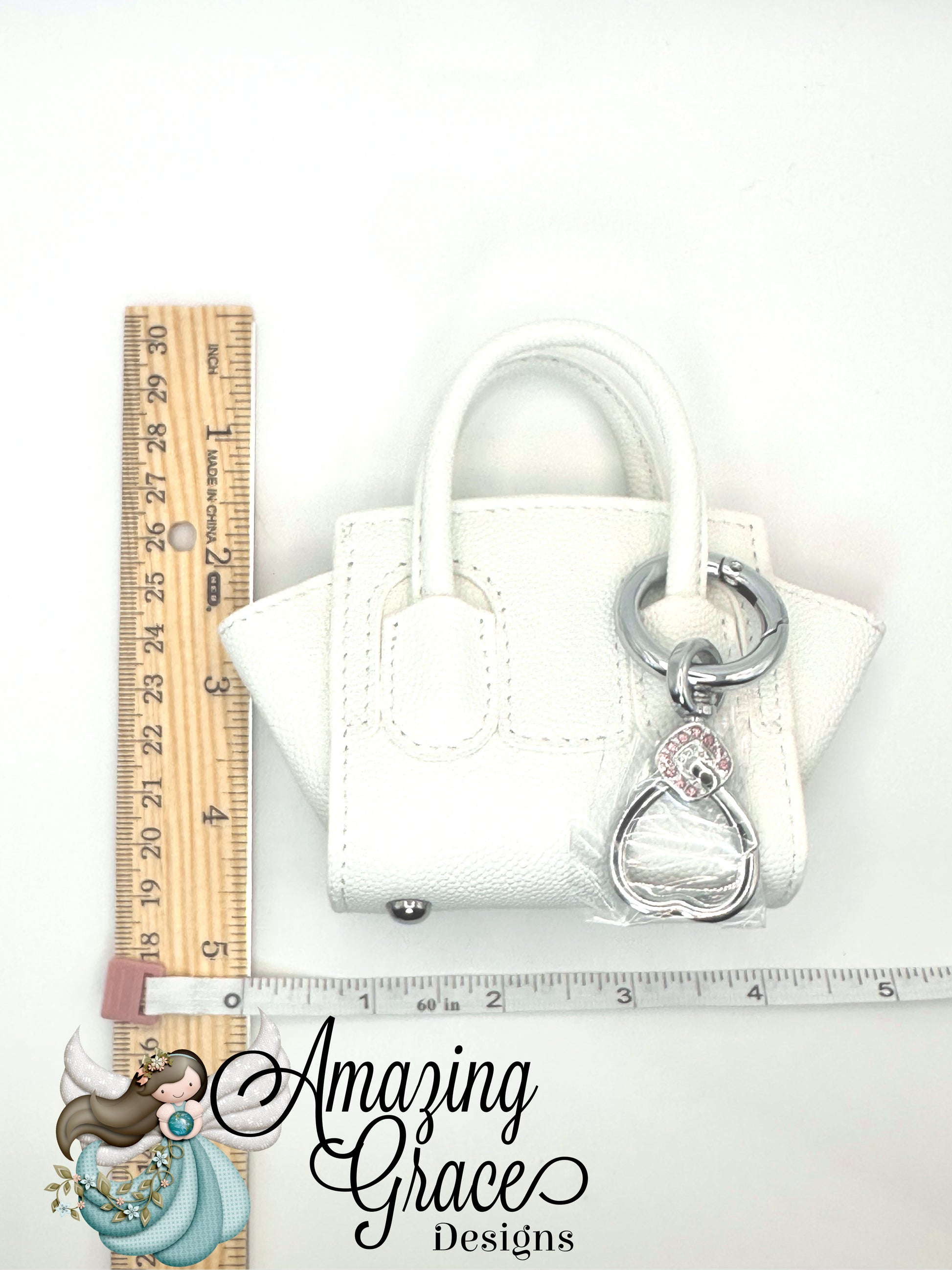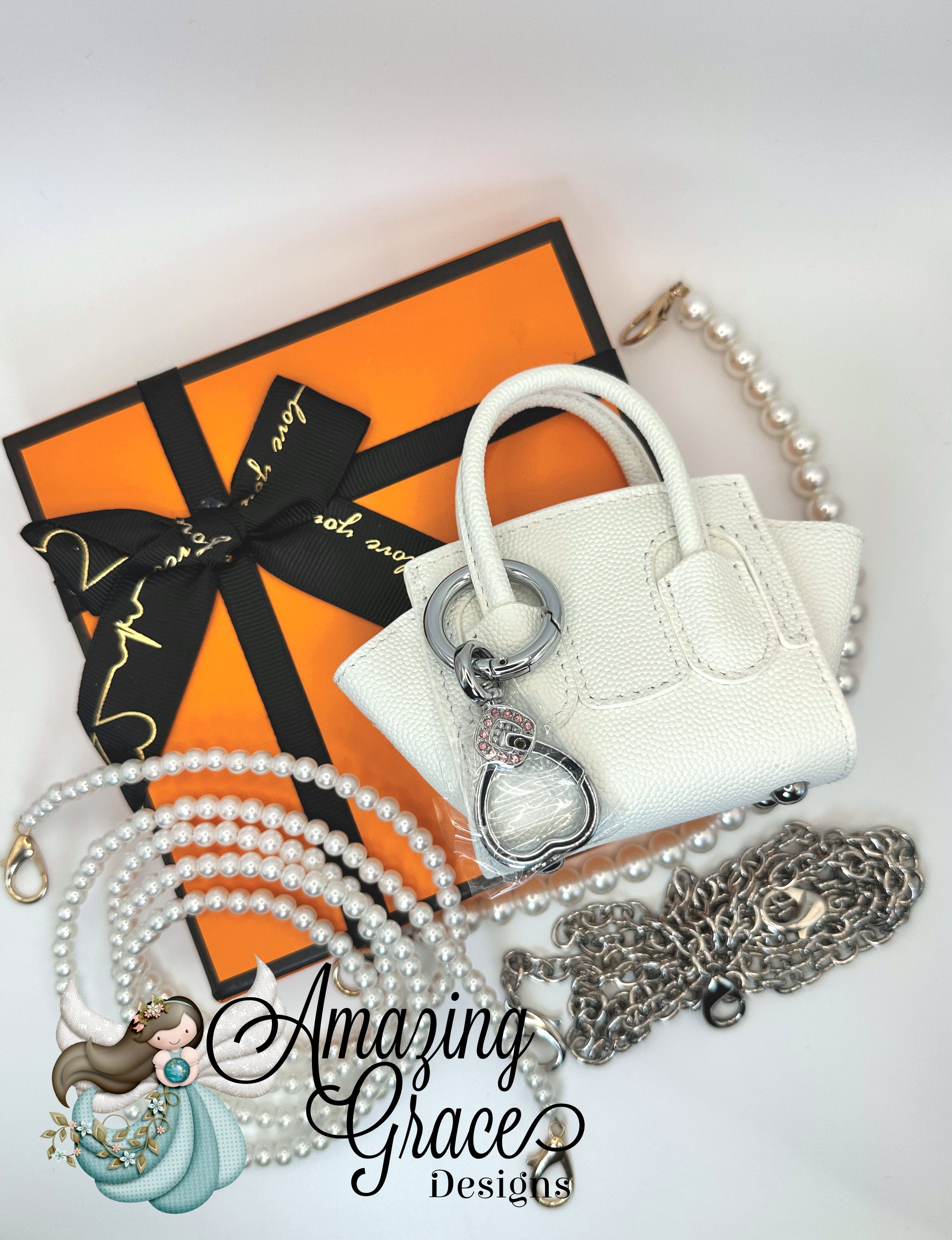 This elegant mini bag is a stylish and compact accessory for any occasion. The bag features a classic texture on white faux leather, a structured design, and a secure top closure. It comes with a beautiful silver-tone chain strap, perfect for wearing as a shoulder or crossbody bag. With dimensions of approximately 3" in height by 4" in length, this bag is perfectly sized to hold small essentials like keys, cards, and lipstick, making it an ideal choice for a night out.