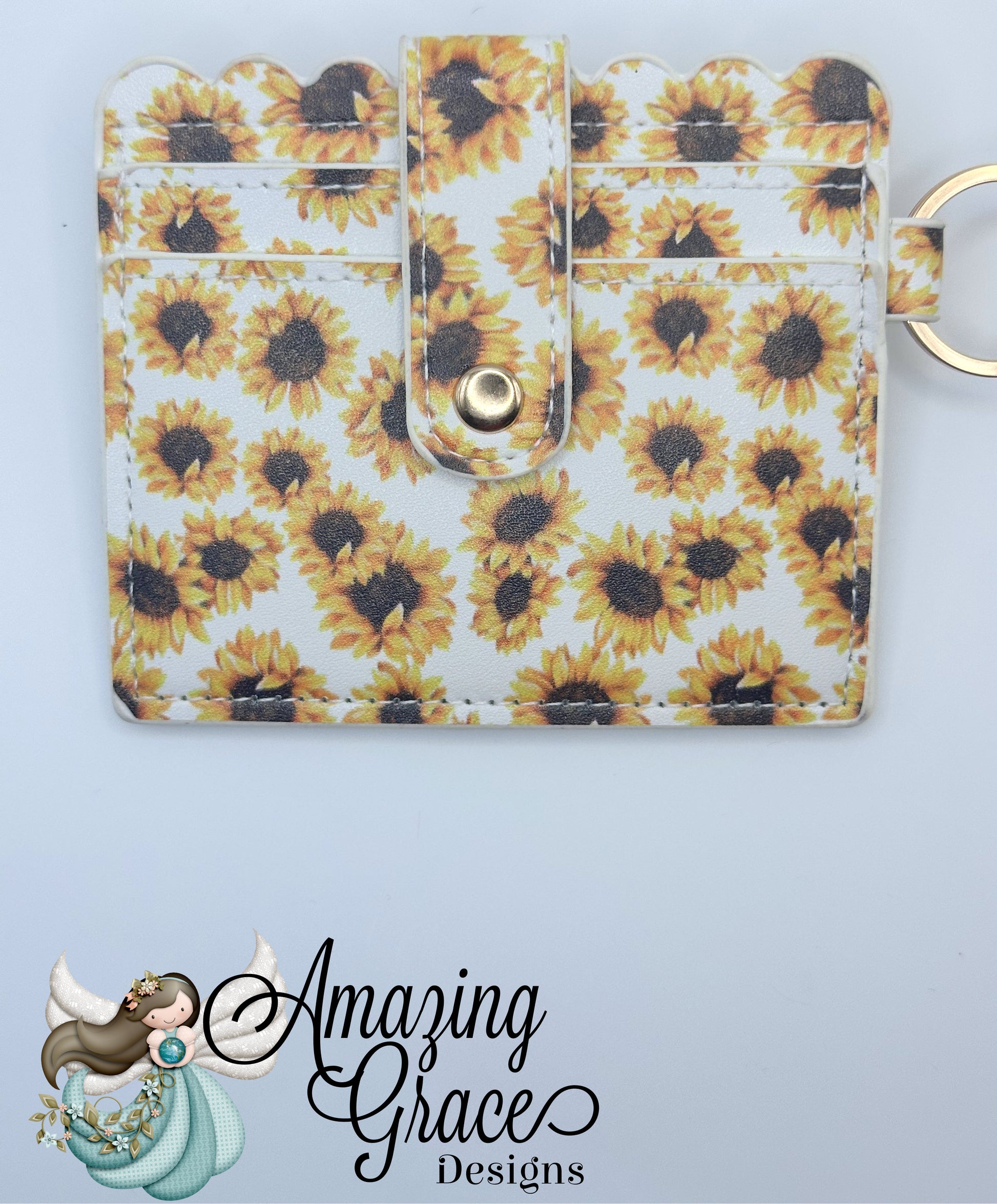 Sunflower Print Scalloped ID and Card Holder with Keychain